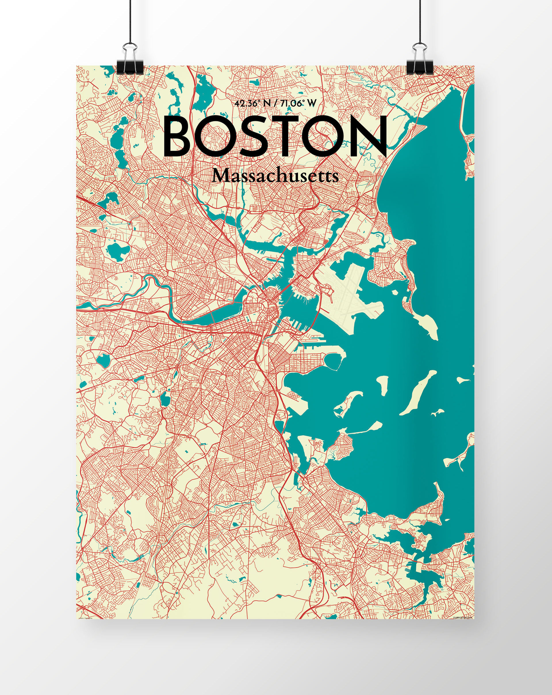 Boston, Massachusetts Map Art by City Prints The Map Shop