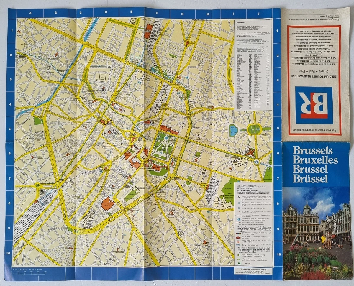 Vintage 1988 Bruxelles Brussels Fold Out Tourist Street Plan +