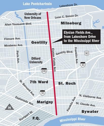 Elysian Fields New Orleans Map – New Orleans police are asking for the injured two men shortly after 4 p.m. on Nov. 27 near the 1700 block of Elysian Fields Avenue. It was one of two shootings that unfolded nearby and in . Find out schedule and parade routes for Krewe de Vieux, Joan of Arc, Chewbacchus and more marching parades in Nola. .