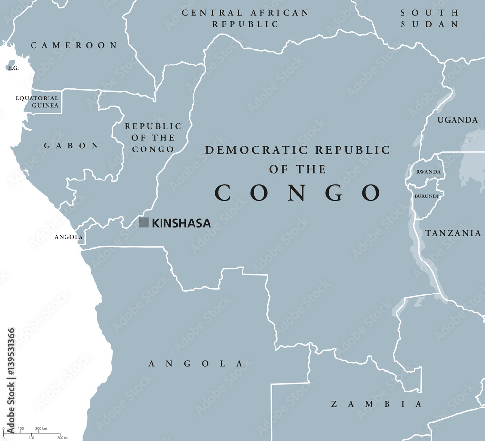 Democratic Republic of the Congo political map with capital